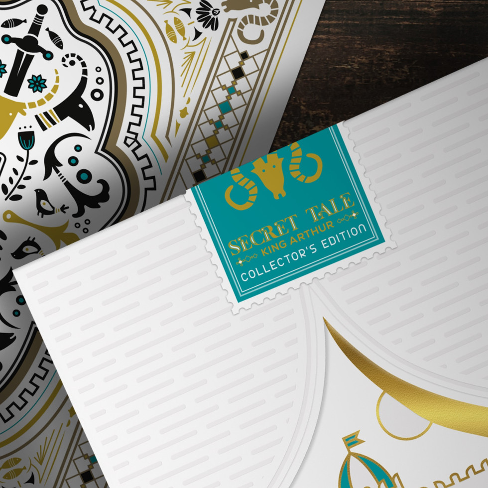 Mini Softcover booklet 68 pages The whole tale of "Merlin's confession" All court card illustrations with character background Full-color print and Gold foil on the cover
